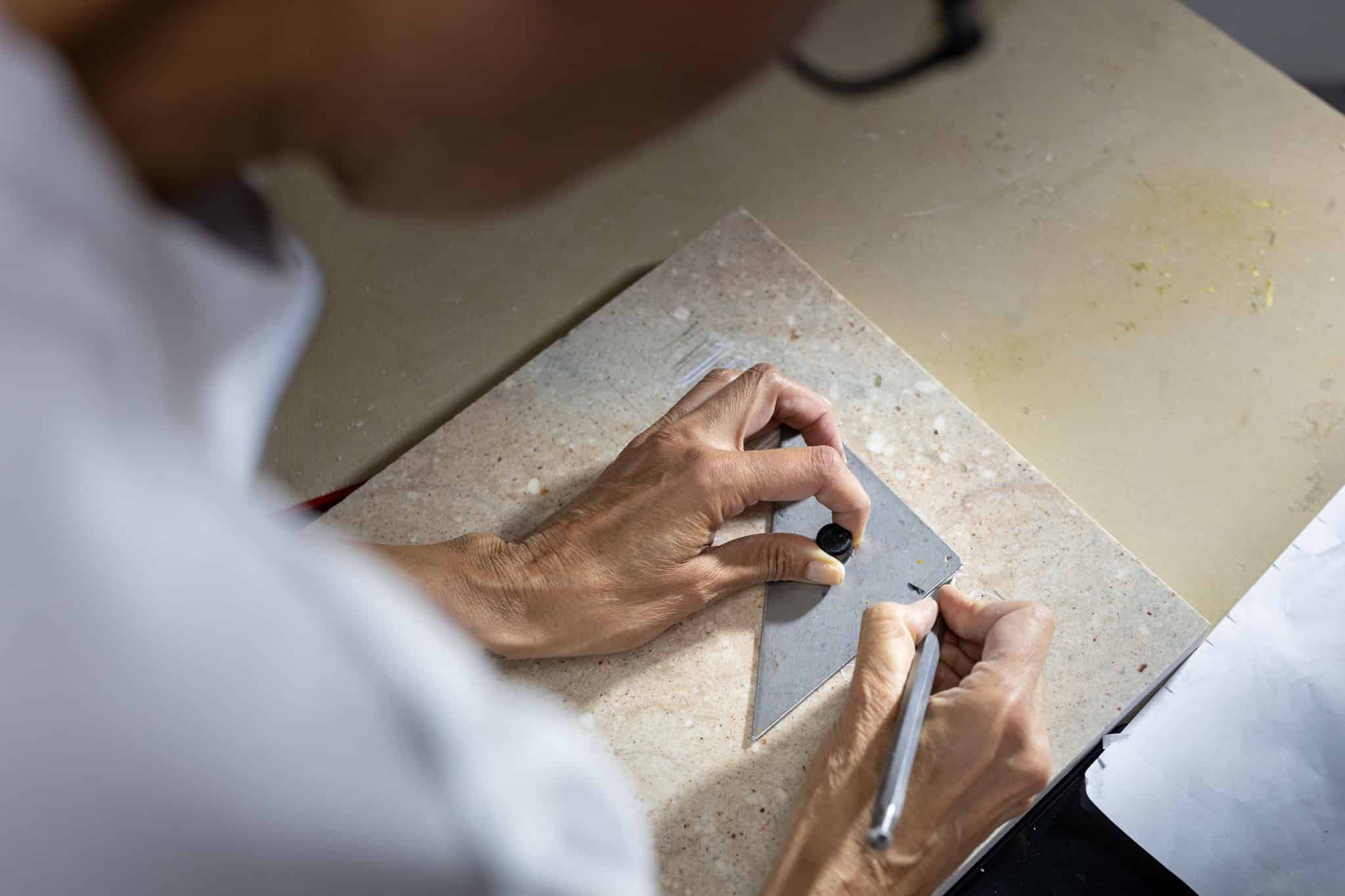 - Vorbereitung der Gestaltung: Präzise Vorzeichnung per Hand bei Handgravur oder Schablonenerstellung bei der maschinellen Gravur.