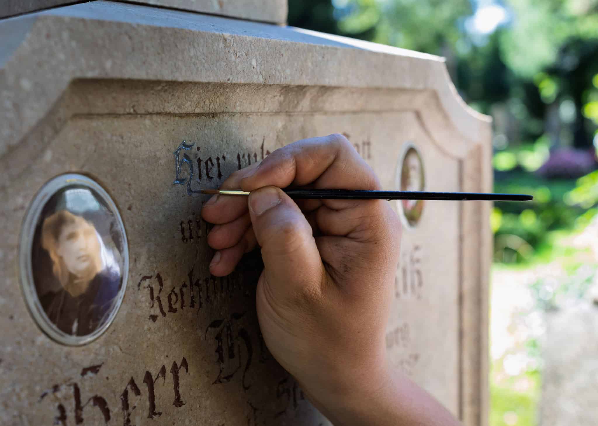 Sonne, Regen und Frost lassen die einst klaren Buchstaben verblassen, feine Linien werden weicher und die Inschrift wirkt weniger präsent. Eine behutsame Auffrischung schenkt der Grabinschrift neue Klarheit, ohne den Charakter des Steins zu verändern. Bei MORIVA betrachten wir diese Arbeit als Form der sanften Pflege. Wir sehen jede Grabinschrift als Teil einer Geschichte. Sie trägt Namen, Daten und Worte, die bleiben sollen. Deshalb gehen wir mit größter Achtsamkeit vor, um die ursprüngliche Gestaltung zu respektieren. Wir verwenden ausschließlich hochwertige Materialien, die witterungsbeständig sind und die Lesbarkeit über viele Jahre hinweg sichern. Eine Auffrischung bestehender Grabinschriften lässt den Ort des Erinnerns wieder klar und gepflegt erscheinen. Sie bewahrt, was bedeutend ist, und macht sichtbar, was im Herzen weiterlebt.
